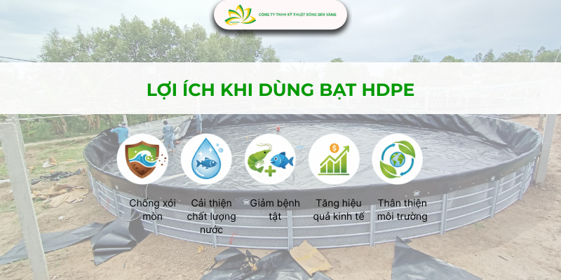 Ngoài ra, màng HDPE còn có khả năng chống tác nhân gây hại như vi khuẩn, ký sinh trùng và các yếu tố môi trường bất lợi khác. Nhờ đó, môi trường trong ao được bảo vệ tốt hơn, giảm thiểu nguy cơ bệnh tật cho tôm, giúp tăng tỷ lệ sống và năng suất thu hoạch. Những lợi ích này đóng vai trò quyết định trong việc nâng cao hiệu quả và tính bền vững của mô hình nuôi tôm.